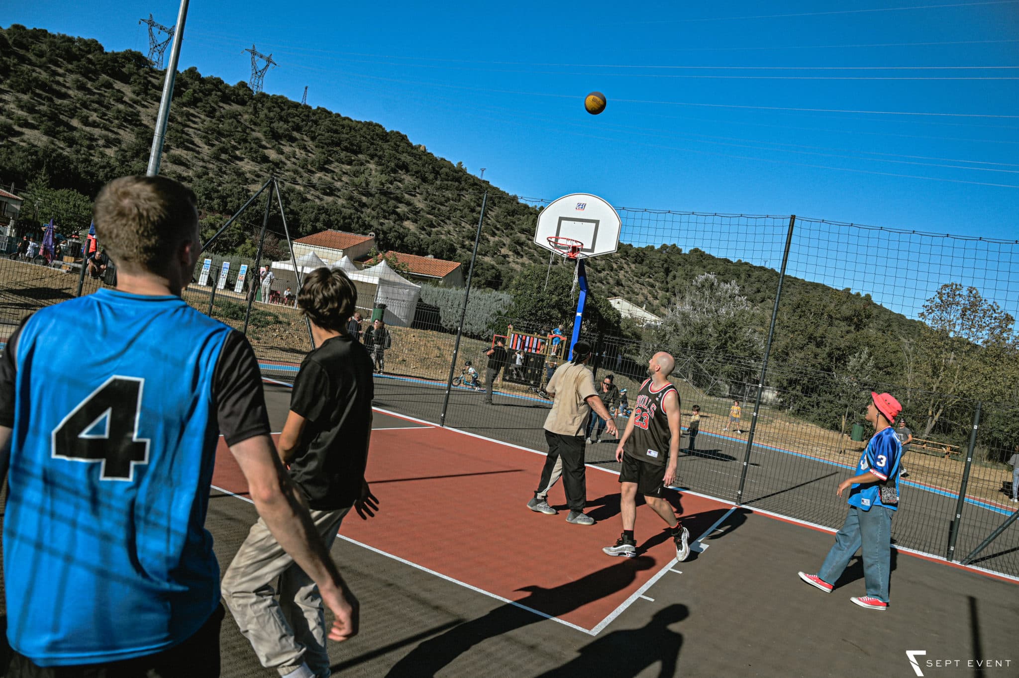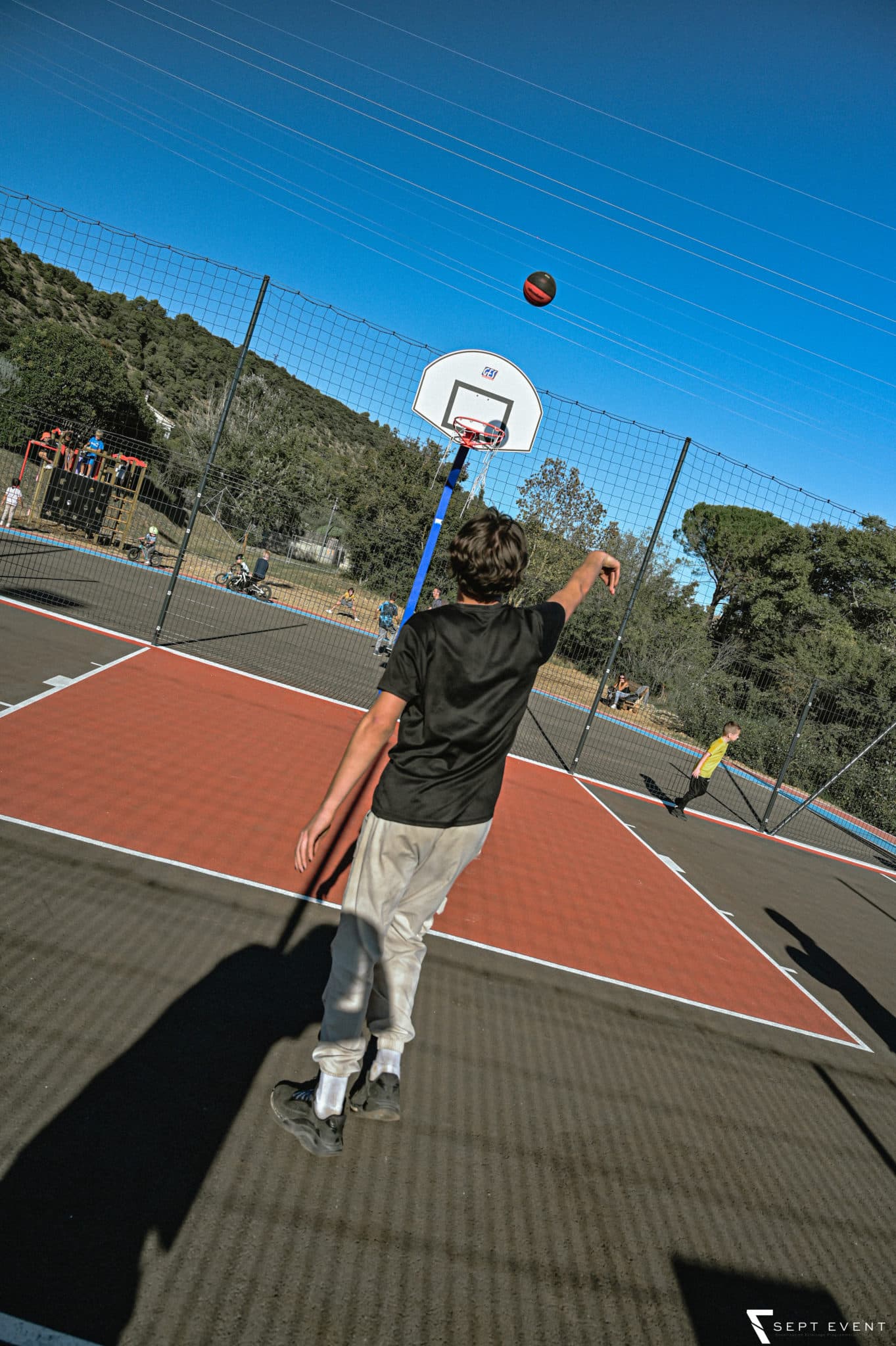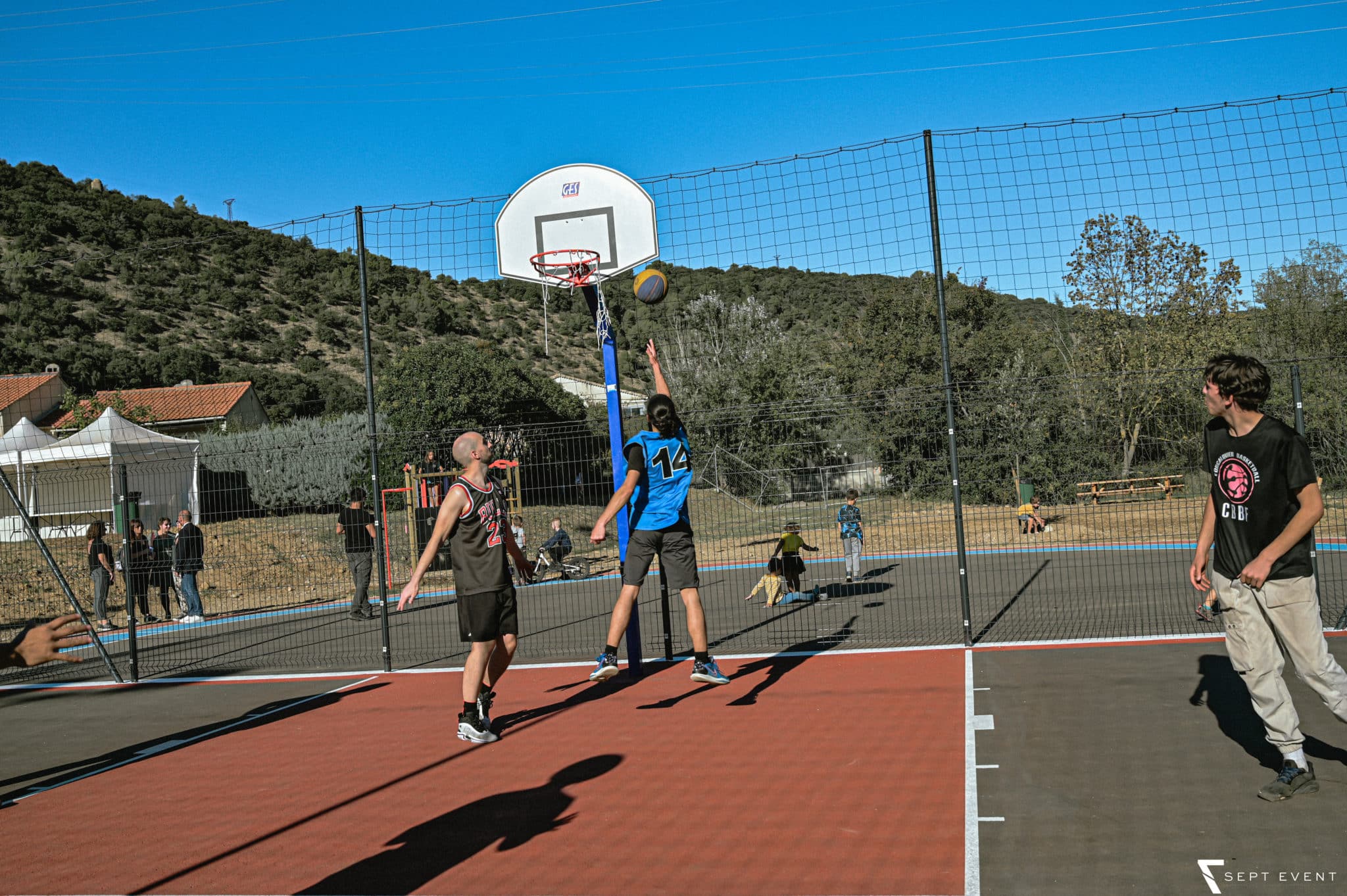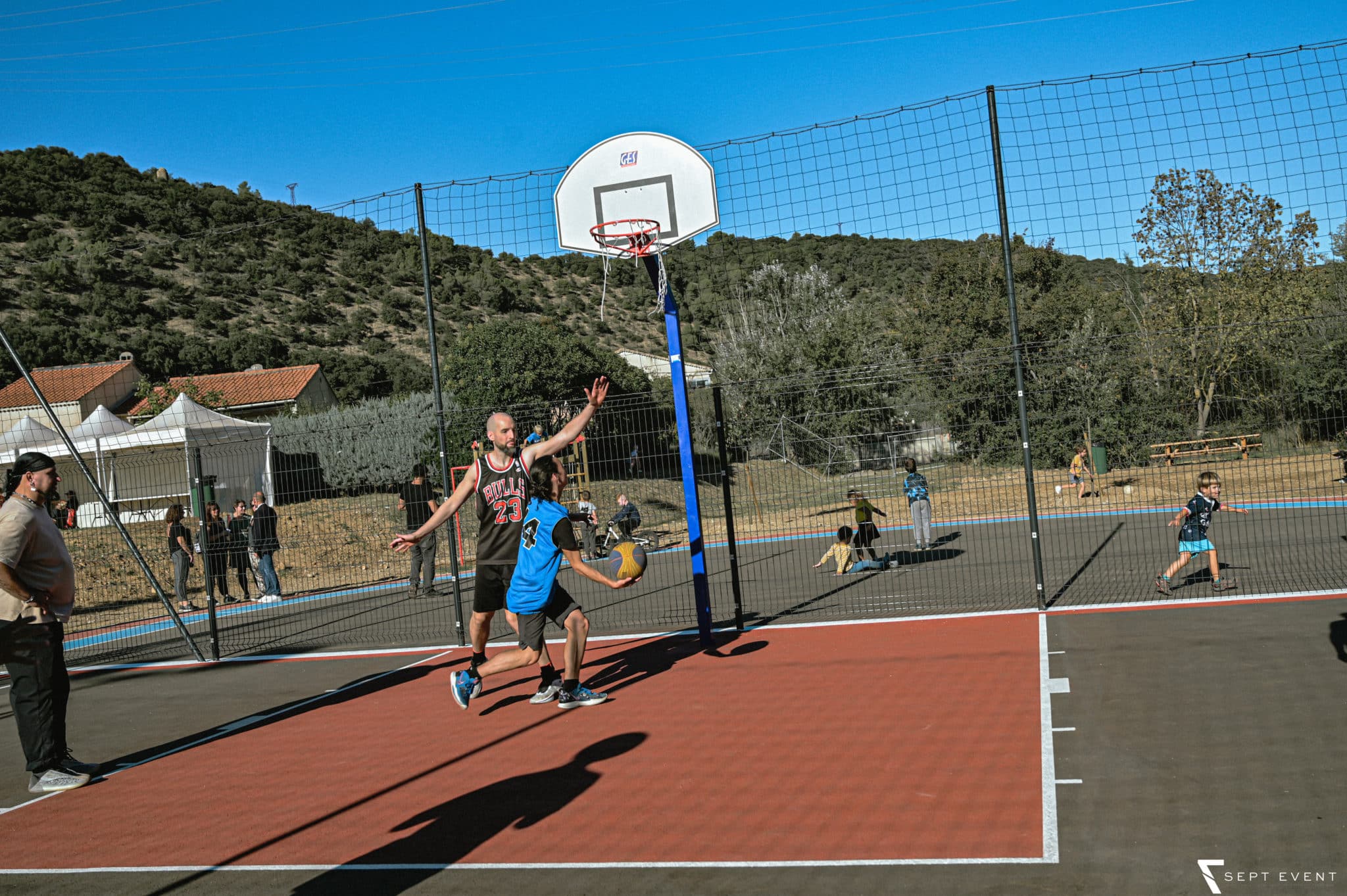 – L’espace terrain de sport avec terrain multi sport, terrain de basket 3*3 et zone d’échauffement