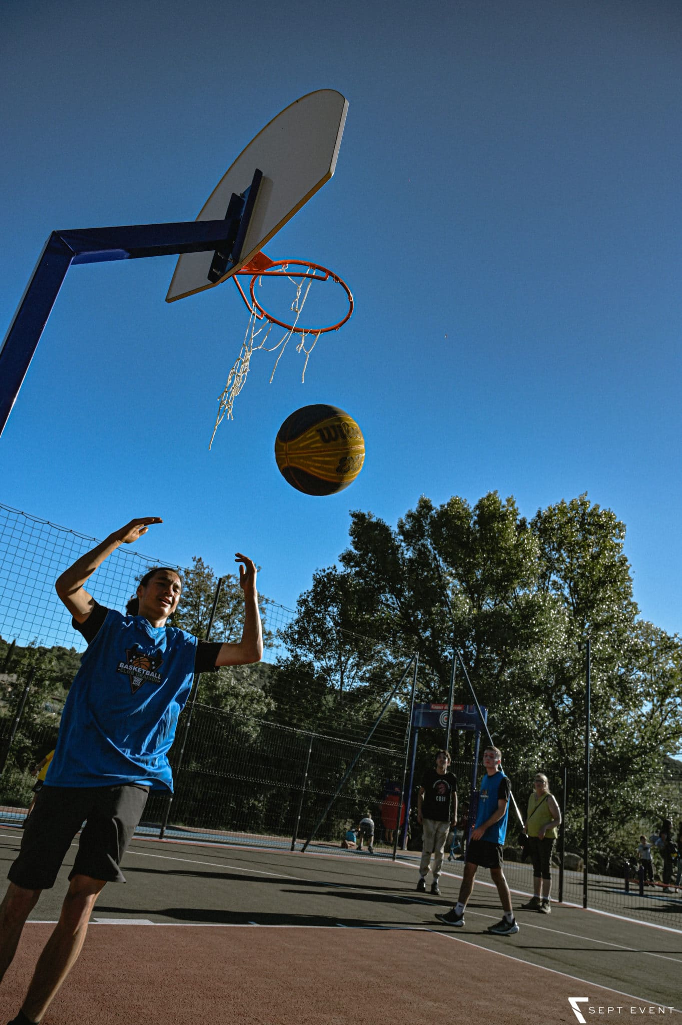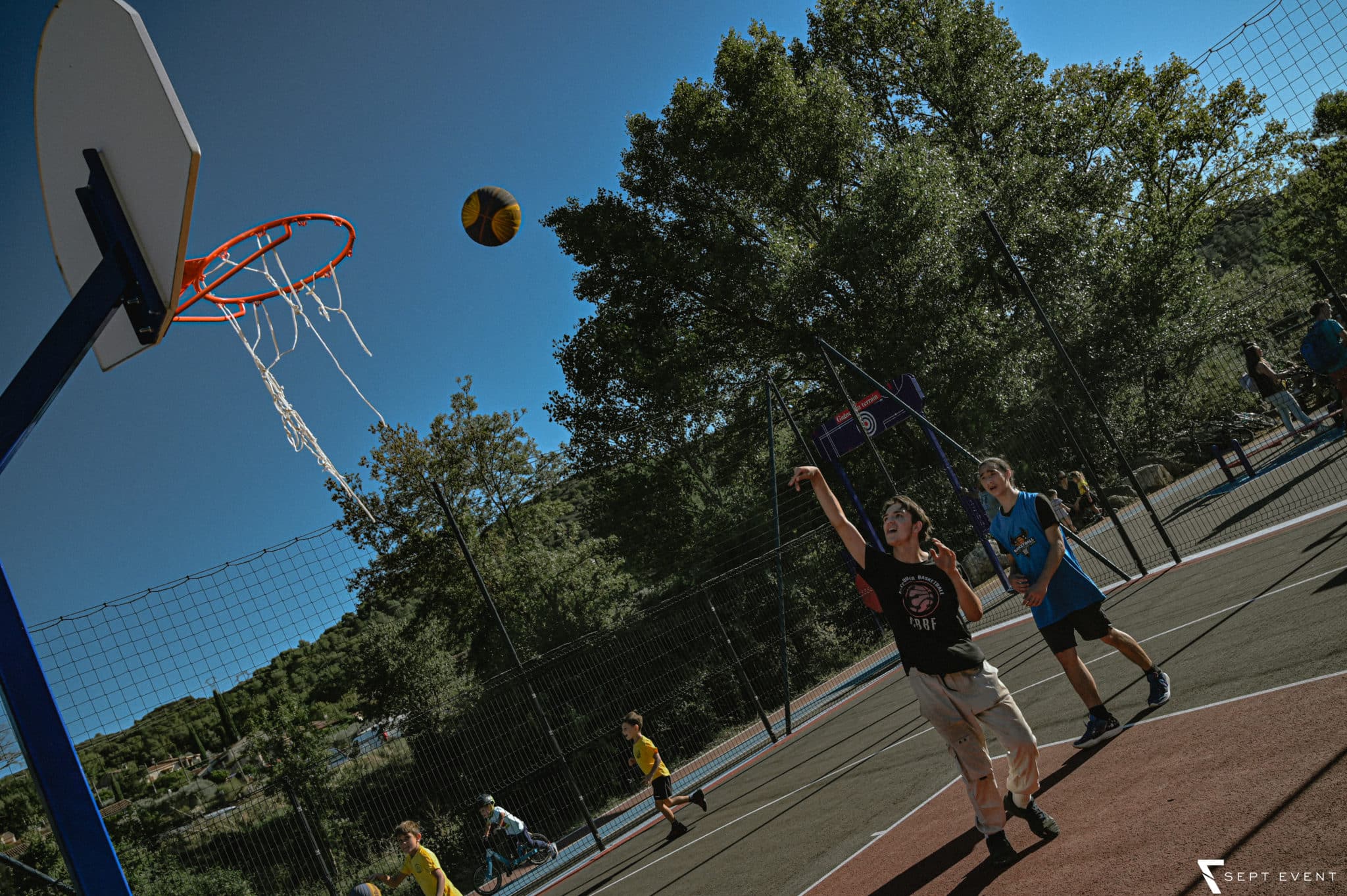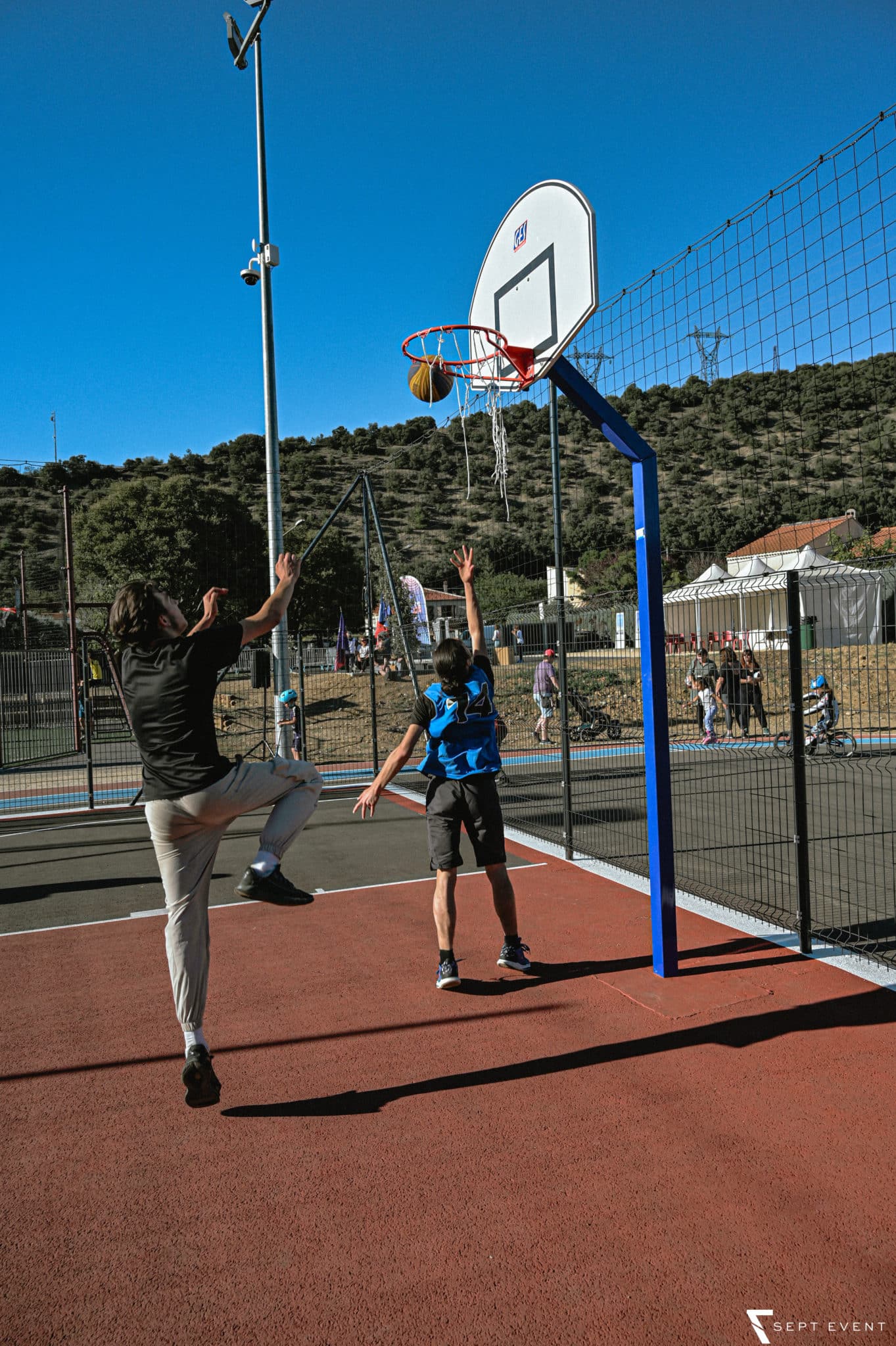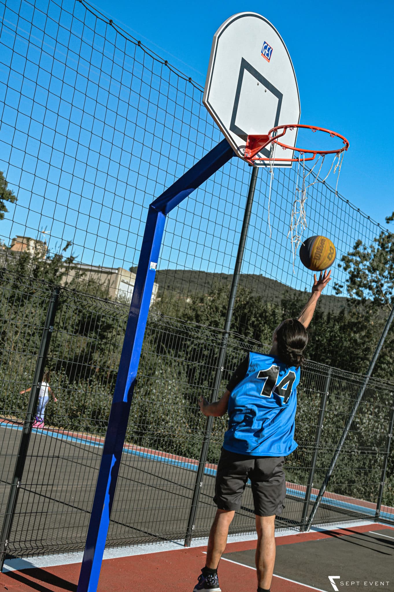 – L’espace terrain de sport avec terrain multi sport, terrain de basket 3*3 et zone d’échauffement